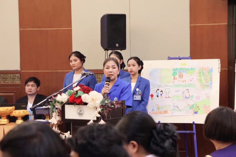 นางสาว สุชาดา หมื่นกล้า รองประธานฝ่ายการสังคมสงเคราะห์ กล่าวรายงาน พร้อมด้วยหัวหน้าส่วนราชการให้การต้อนรับ