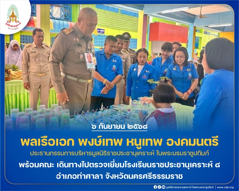 พลเรือเอก พงษ์เทพ หนูเทพ องคมนตรี ประธานกรรมการบริหาร มูลนิธิราชประชานุเคราะห์ฯ พร้อมคณะ เดินทางไปตรวจเยี่ยมโรงเรียนราชประชานุเคราะห์ ๘ อำเภอท่าศาลา จังหวัดนครศรีธรรมราช