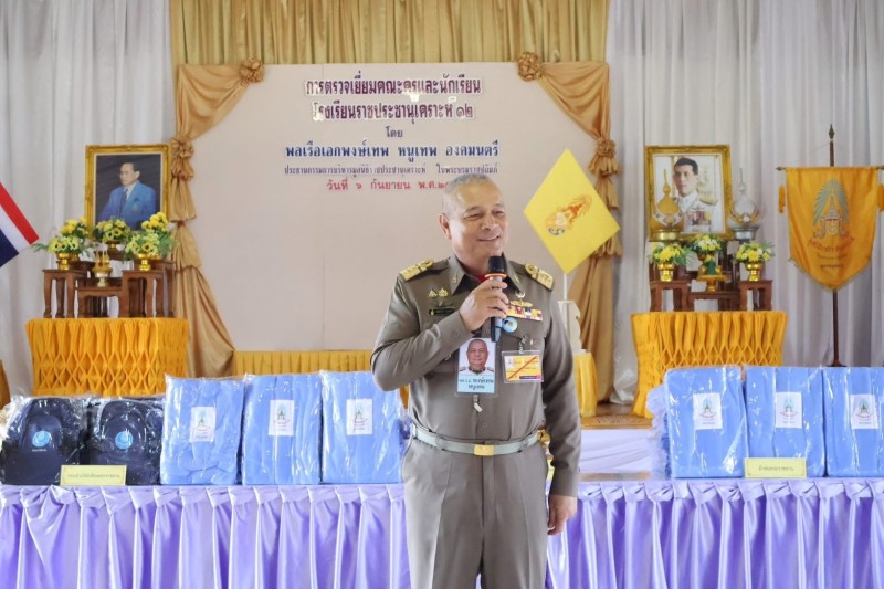 พลเรือเอก พงษ์เทพ หนูเทพ องคมนตรี ประธานกรรมการบริหาร มูลนิธิราชประชานุเคราะห์ฯ พร้อมคณะ เดินทางไปตรวจเยี่ยมโรงเรียนราชประชานุเคราะห์ ๑๒ อำเภอบ้านนาสาร จังหวัดสุราษฎร์ธานี