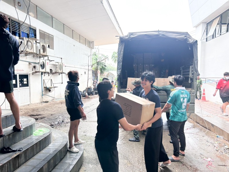 วันพุธ ที่ ๒๖ พฤศจิกายน ๒๕๖๘ เวลา ๑๘.๐๐ น. ที่ศูนย์พักพิงศูนย์กีฬาและสุขภาพ มหาวิทยาลัยสงขลานครินทร์ นายวิลาศ รุจิวัฒนพงศ์ รองประธานฝ่ายบรรเทาทุกข์ พร้อมคณะเจ้าหน้าที่จากส่วนกลาง นำสิ่งของเครื่องใช้ที่จำเป็น อาทิ เต็นท์นอน จำนวน ๑,๐๐๐ ชุด ผ้าห่ม จำนวน ๑,๐๐๐ ผืน ผ้าเช็ดตัว จำนวน ๑,๐๐๐ ผืน เสื่อ จำนวน ๑,๐๐๐ ผืน และข้าวกล่อง จำนวน ๑,๕๐๐ กล่อง ไปมอบให้แก่ผู้ประสบอุทกภัยที่อพยพมาอยู่ภายในศูนย์พักพิง เพื่อช่วยบรรเทาความเดือนร้อนแก่ประชาชนในเบื้องต้น