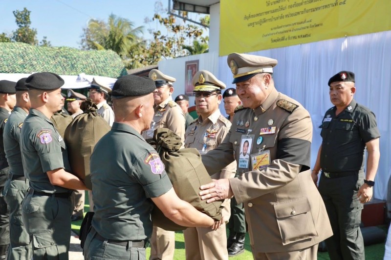 โอกาสนี้ องคมนตรีและคณะ เดินทางไปยังกองร้อยตำรวจตระเวนชายแดนที่ ๓๔๕ ตำบลแม่ระมาด อำเภอแม่ระมาด จังหวัดตาก เพื่อเชิญสิ่งของพระราชทานมอบให้แก่ผู้ปฏิบัติงานด้านความมั่นคง จำนวน ๔๕ ถุง