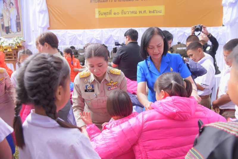 โอกาสนี้ องคมนตรีและคณะเดินทางไปยังโครงการบ้านเล็กในป่าใหญ่ในสมเด็จพระนางเจ้าสิริกิติ์ พระบรมราชินีนาถ ดอยฟ้าห่มปก ตำบลแม่สาว อำเภอแม่อาย จังหวัดเชียงใหม่ เพื่อเชิญสิ่งของพระราชทาน ประกอบด้วย เสื้อกันหนาวเด็ก มอบให้แก่เด็กในพื้นที่โครงการ จำนวน ๖๐ ตัว และถุงพระราชทาน มอบให้แก่ราษฎรและผู้ปฏิบัติงานในพื้นที่โครงการฯ จำนวน ๕๖ ถุง