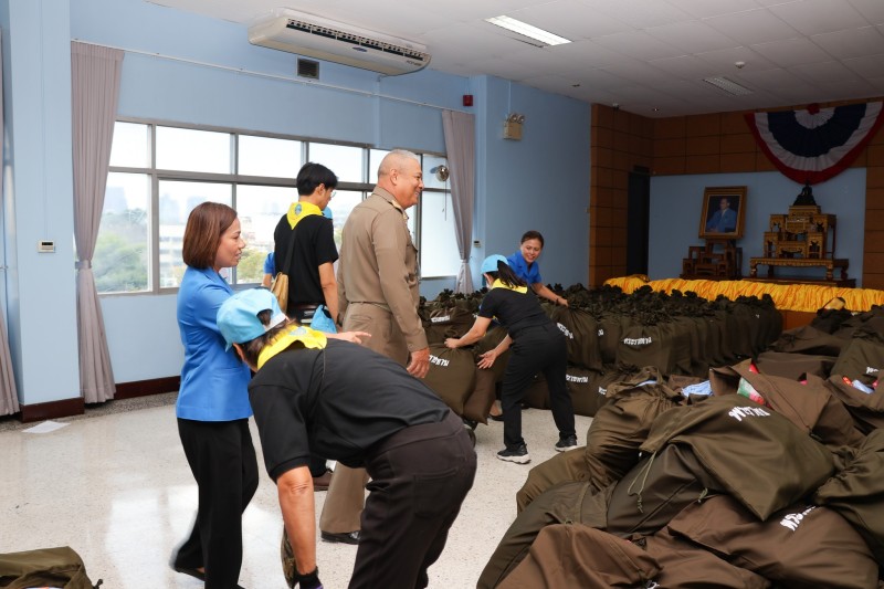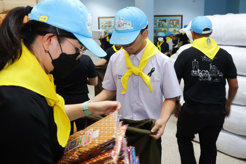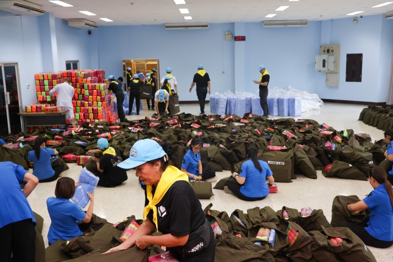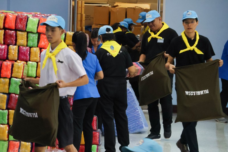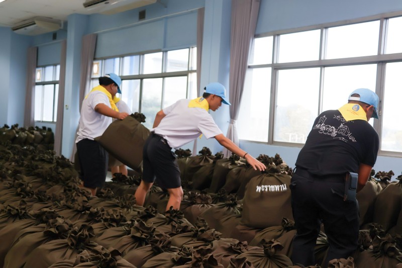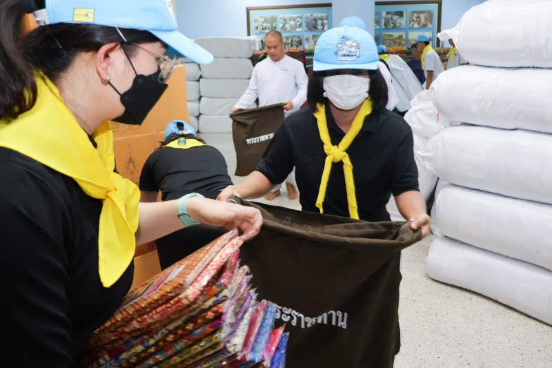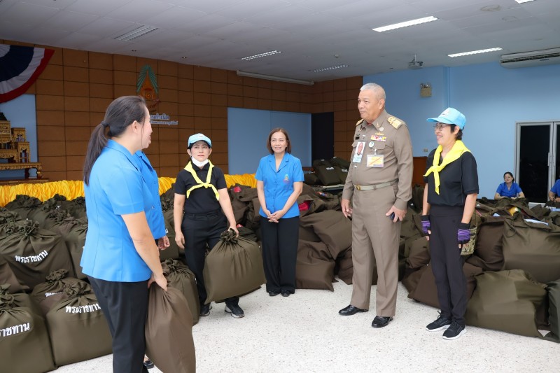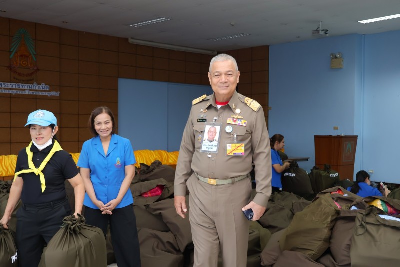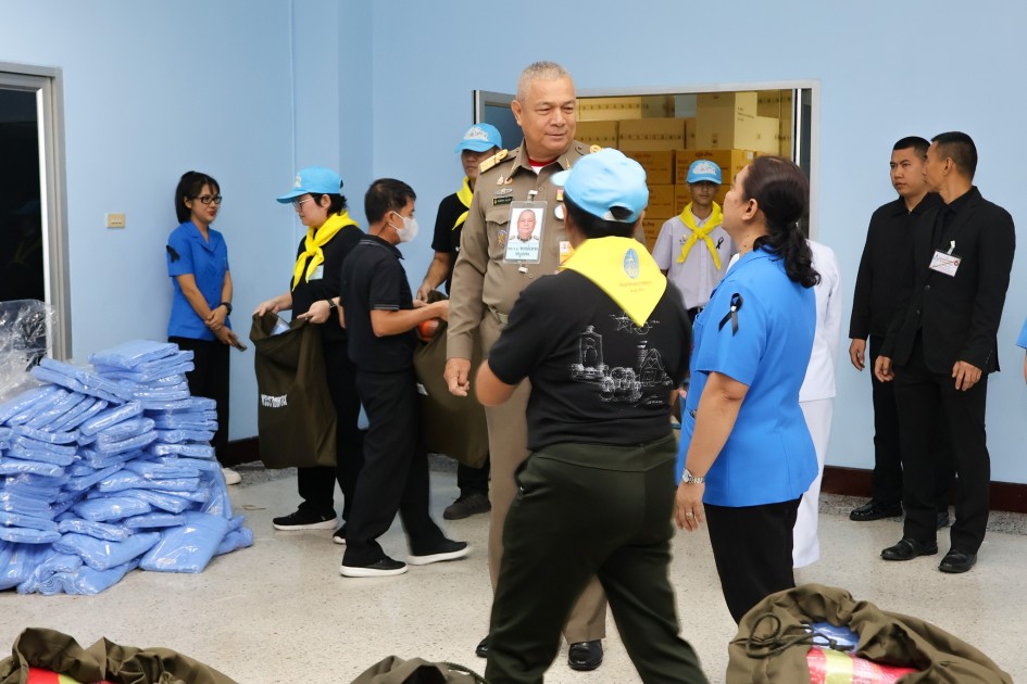 พลเรือเอก พงษ์เทพ หนูเทพ องคมนตรี ประธานกรรมการบริหารมูลนิธิราชประชานุเคราะห์ฯ ตรวจเยี่ยมการบรรจุถุงพระราชทานเครื่องอุปโภคที่จำเป็น สำหรับเตรียมขนส่งไปที่ศูนย์พักพิง เพื่อนำไปมอบแก่ผู้ที่ได้รับผลกระทบ ...
