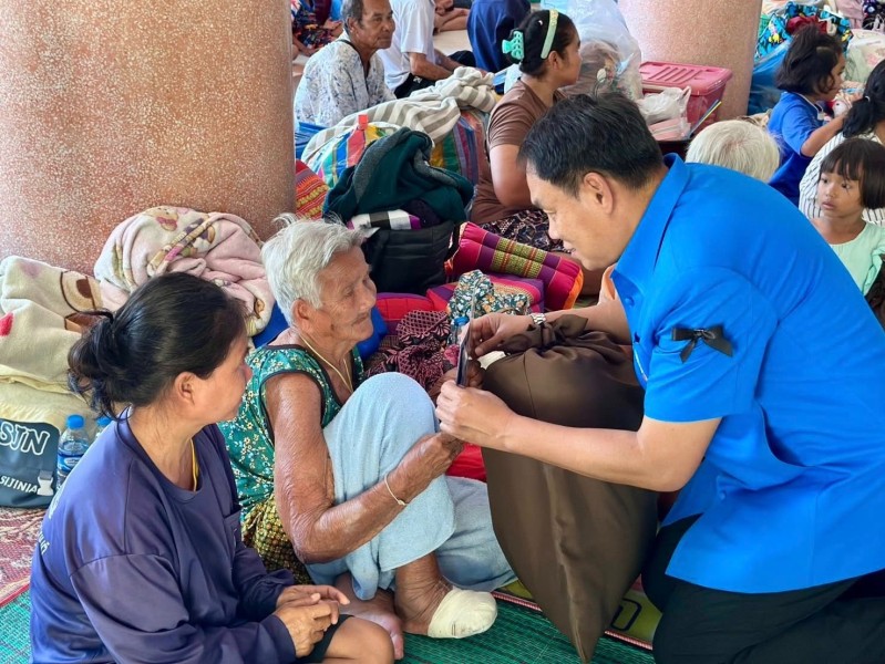 นายสมมาฏฐ์ โพธิ รองผู้ว่าราชการจังหวัดอุบลราชธานี ผู้แทนประธานกรรมการมูลนิธิราชประชานุเคราะห์ ประจำจังหวัดอุบลราชธานี พร้อมทั้งนายวิลาศ รุจิวัฒนพงศ์ รองประธานฝ่ายบรรเทาทุกข์ และคณะเจ้าหน้าที่มูลนิธิราชประชานุเคราะห์ ในพระบรมราชูปถัมภ์ มอบถุงพระราชทานเครื่องอุปโภคที่จำเป็น ถุงพระราชทานสำหรับเด็ก และเต็นท์นอน แก่ผู้ที่ได้รับผลกระทบจากเหตุการณ์ความไม่สงบในพื้นที่ชายแดน ไทย-กัมพูชา อพยพจากที่พักอาศัยมาที่ศูนย์พักพิง จังหวัดอุบลราชธานี จำนวน ๒,๐๐๐ ชุด