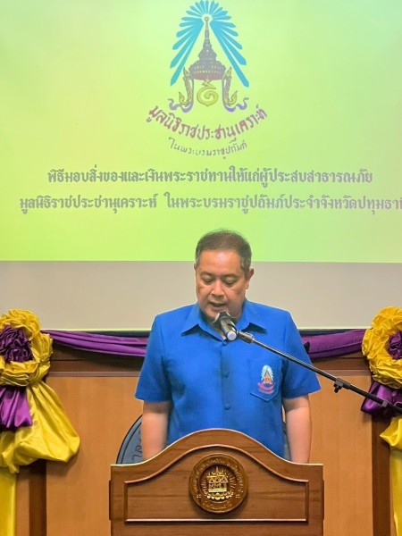 นายเอกวิทย์ มีเพียร ผู้ว่าราชการจังหวัดปทุมธานี ประธานกรรมการมูลนิธิราชประชานุเคราะห์ ประจำจังหวัดปทุมธานี เป็นประธานในพิธีมอบสิ่งของพระราชทานและเงินพระราชทานช่วยเหลือแก่ครอบครัวผู้ประสาสาธารณภัย ในพื้นที่จังหวัดปทุมธานี จำนวน ๒ ครัวเรือน ณ ห้องประชุมบางหลวง ๑ ชั้น ๓ เทศบาลตำบลบางหลวง หมู่ที่ ๓ ตำบลบ้านฉาง อำเภอเมืองปทุมธานี จังหวัดปทุมธานี