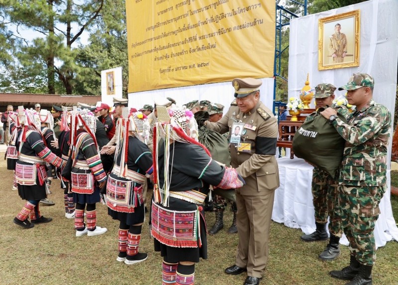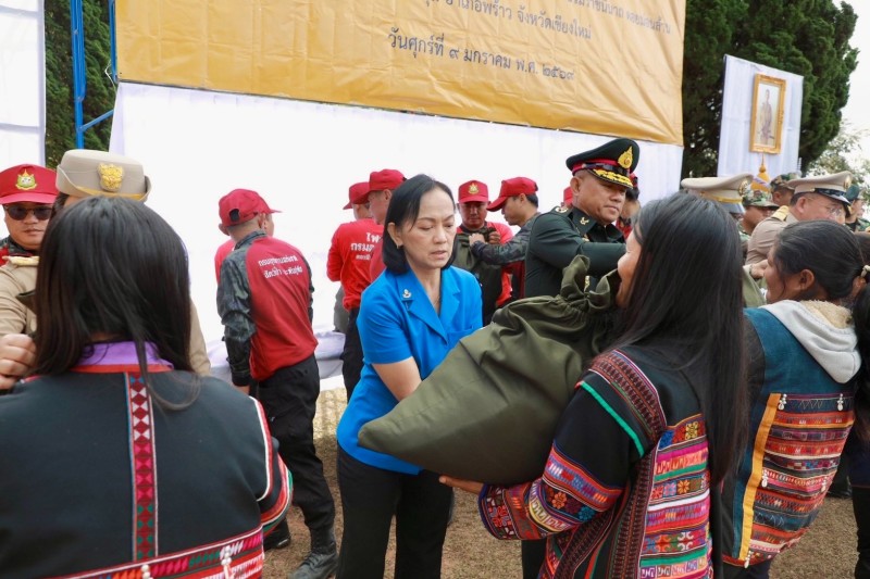 ประธานอนุกรรมการติดตามและขับเคลื่อนโครงการอันเนื่องมาจากพระราชดำริในพื้นที่ภาคเหนือ พร้อมด้วยนางสุพร ตรีนรินทร์ เลขาธิการ กปร. เจ้าหน้าที่มูลนิธิราชประชานุเคราะห์ ในพระบรมราชูปถัมภ์ ที่ปรึกษาคณะอนุกรรมการฯ และคณะอนุกรรมการฯ เดินทางไปยังโครงการสถานีพัฒนาเกษตรที่สูงในสมเด็จพระนางเจ้าสิริกิติ์ พระบรมราชินีนาถ ดอยม่อนล้าน ตำบลป่าตุ้ม อำเภอพร้าว จังหวัดเชียงใหม่ เพื่อเชิญสิ่งของพระราชทานจากพระบาทสมเด็จพระเจ้าอยู่หัว และสมเด็จพระนางเจ้าฯ พระบรมราชินี ไปมอบให้แก่ราษฎรและผู้ปฏิบัติงานในพื้นที่โครงการฯ ประกอบด้วย ถุงพระราชทาน จำนวน ๑๔๐ ถุง และเสื้อกันหนาวเด็ก จำนวน ๗๔ ตัว
