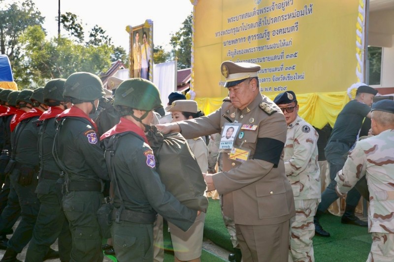 ในการนี้ องคมนตรีและคณะ เดินทางไปยังกองร้อยตำรวจตระเวนชายแดนที่ ๓๓๕ ตำบลทุ่งข้าวพวง อำเภอเชียงดาว จังหวัดเชียงใหม่ เพื่อเชิญถุงพระราชทานมอบให้แก่ผู้ปฏิบัติงานในพื้นที่ จำนวน ๗๐ ถุง พร้อมทั้งตรวจเยี่ยมให้กำลังใจกำลังพลและให้โอวาทแก่ผู้ปฏิบัติงาน