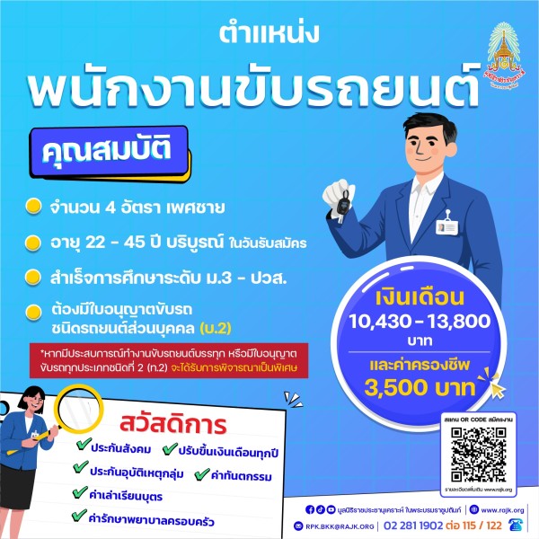 ตำแหน่ง พนักงานขับรถยนต์ จำนวน 4 อัตรา